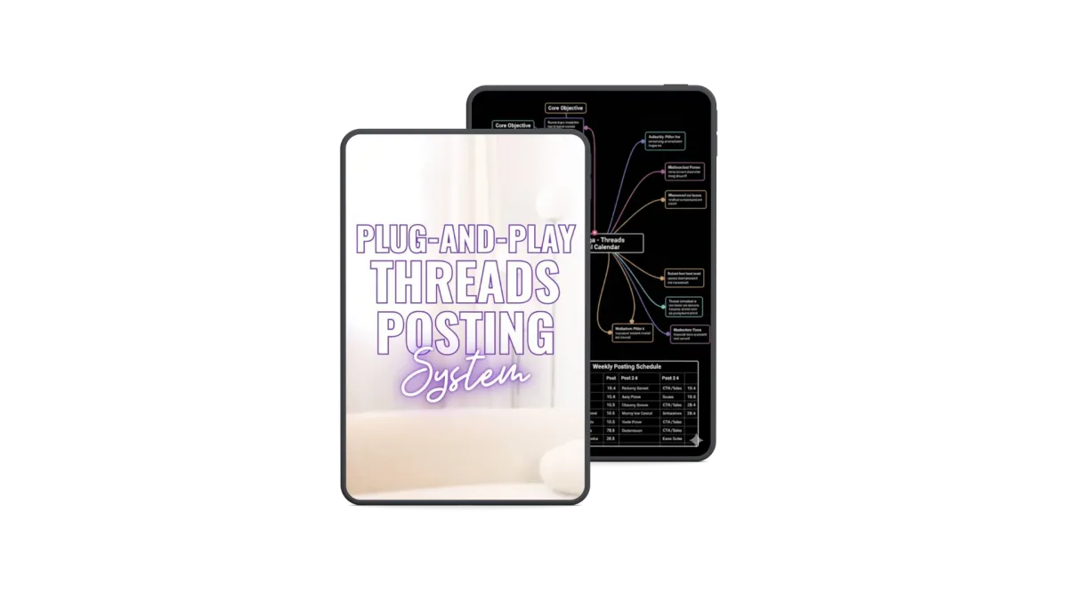 Drop in your offer, follow the prompts, and walk away with ready-to-post Threads tailored to your business. No rewriting your brand. No overthinking hooks. Just a clear daily structure you can execute in 30 minutes or less.