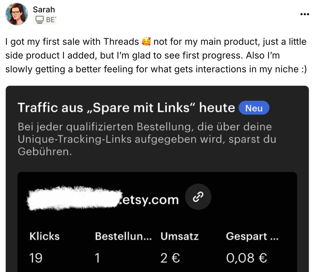 But converting the visibility to sales wasn’t easy at first because Threads has different rules.